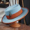 An elegant pork pie made of genuine fur felt complemented with a sleek grosgrain band and a 2″ brim.