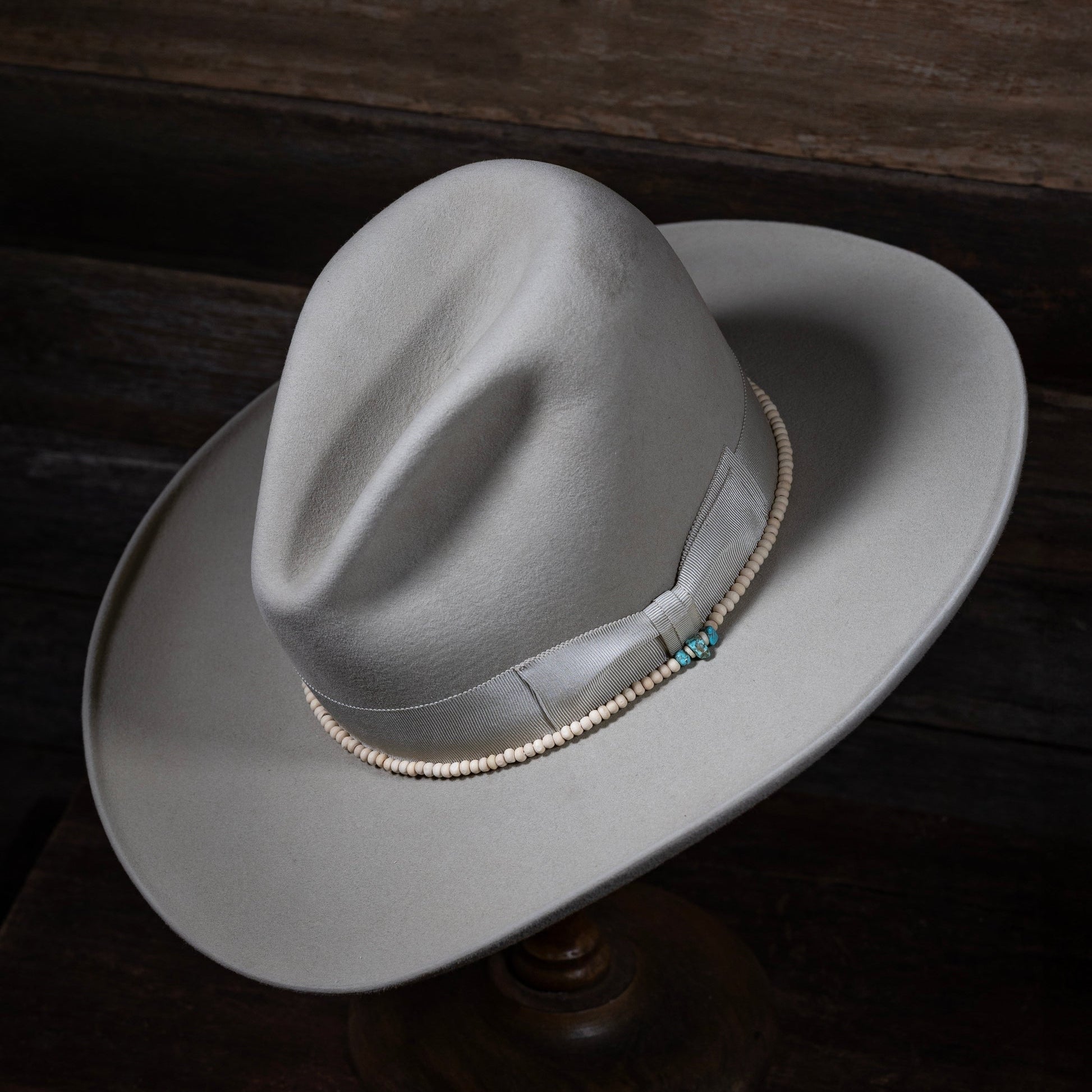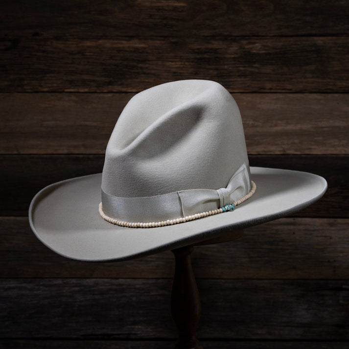 The Old West Cowboy Hat is constructed of quality fur felt and features a sloped crease crown, interior quality sweatband.