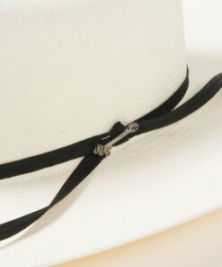 The Rancher Premier Straw Cowboy Hat is structured with a regular oval cattleman crown and is enhanced with a wide roan interior leather sweatband and is finished with a thin satin hat band.
